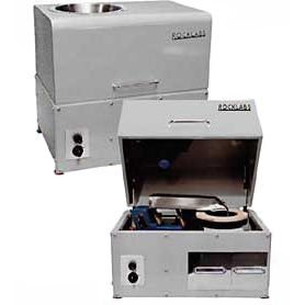 The smaller size is designed to be placed on a work bench but can be used in conjunction with the Rocklabs Continuous Flow Ring Mill (CRM).